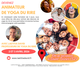 Laetitia DAVID vous propose la prochaine session de formation pour les animateurs de Yoga du Rire, à Saint-Dizier (52) les 2 et 3 avril 2026.